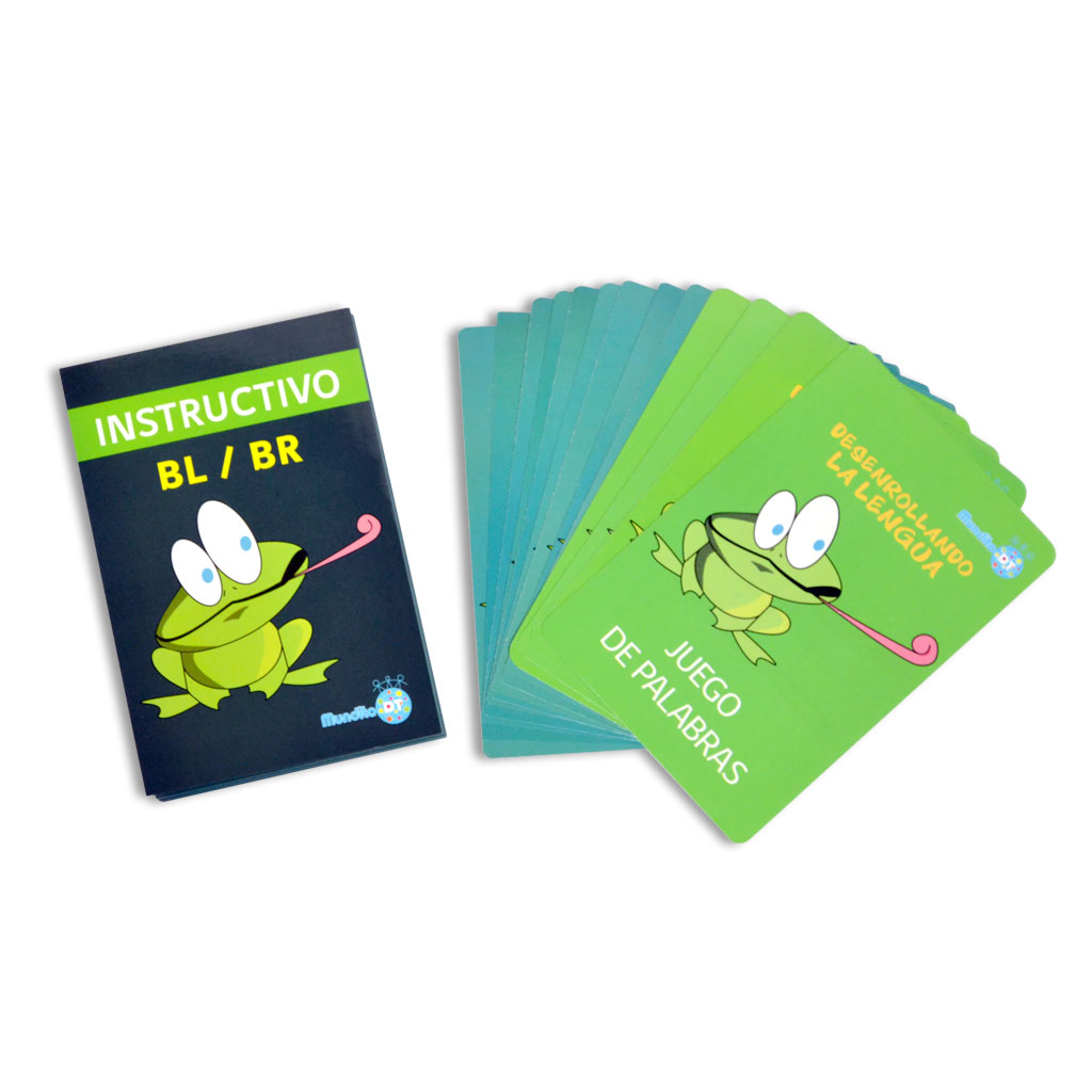 Juego de cartas desarrollado para facilitar, a través del juego, el aprendizaje fonoaudiológico y el desarrollo de la comunicación y expresión del niño. El juego contiene 60 cartas, 44 trabajan palabras con los sinfones BL y BR en posición inicial y medial, 10 cartas trabajan ejercicios para completar palabras y finalmente, 6 cartas con juegos de palabras con la letra “B” y sus respectivos sinfones.