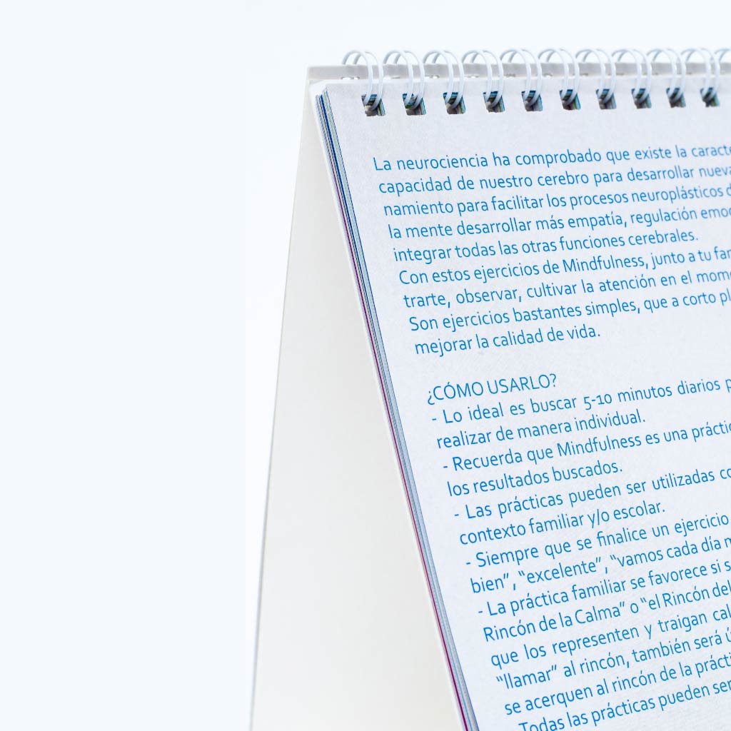Este calendario de 41 prácticas diarias ha sido pensado como una herramienta para facilitar el desarrollo de la atención plena de manera lúdica y entretenida. Cada ejercicio facilita la práctica en familia por medio de instrucciones adaptadas para guiar a niños. De esta manera, a través de la una práctica compartida, el adulto podrá facilitar momentos de convivencia y de aprendizaje conjunto, mejorando la comunicación con el niño/a y, a su vez, estará desarrollando su propia capacidad de atención plena.