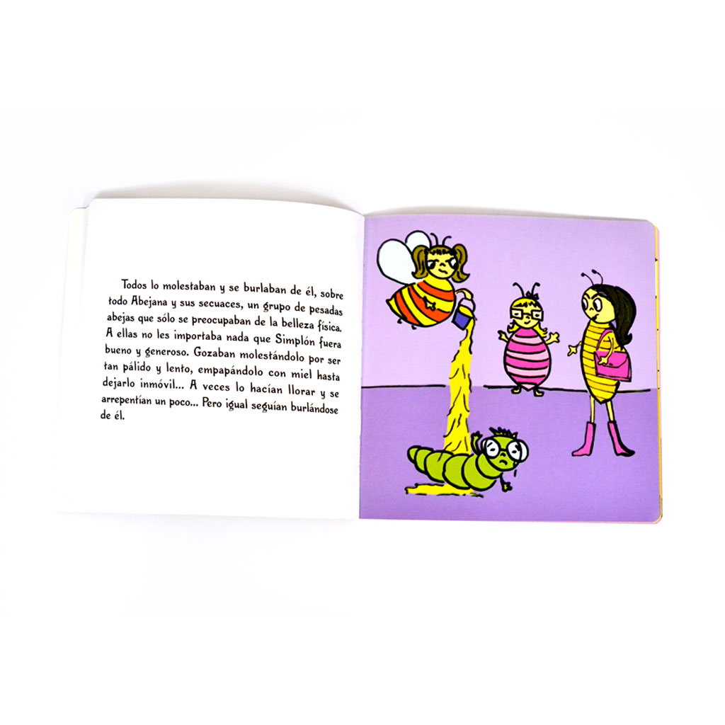 Simplón es un gusano que tiene características físicas que lo hacen diferente a los demás. Muchos insectos se burlan de él, pero Simplón le enseñará a Chinita Sin Puntos a aceptarse tal como es, y descubrir que no importa cómo nos veamos, lo que importa es como somos por dentro. El cuento de Simplón ayudará a desarrollar la autoestima y la auto-aceptación en los niños, en especial en aquellos que poseen características físicas o de desarrollo que los hacen verse o sentirse diferentes a los demás.